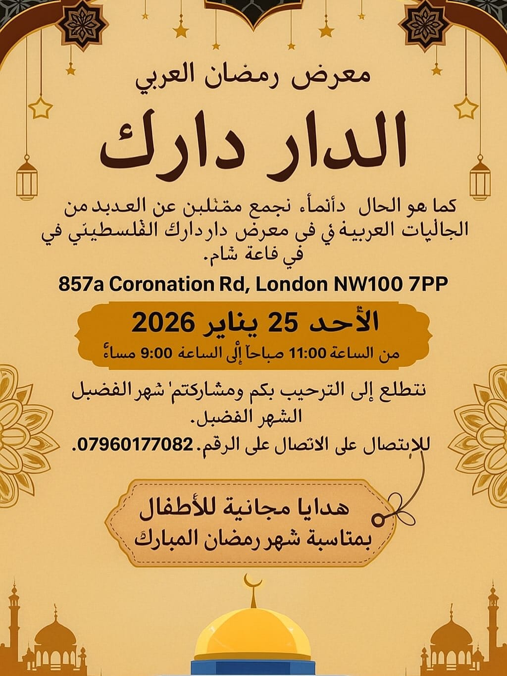 Be part of this special Arab Ramadan exhibition and join us for a day of culture, connection, and celebration.